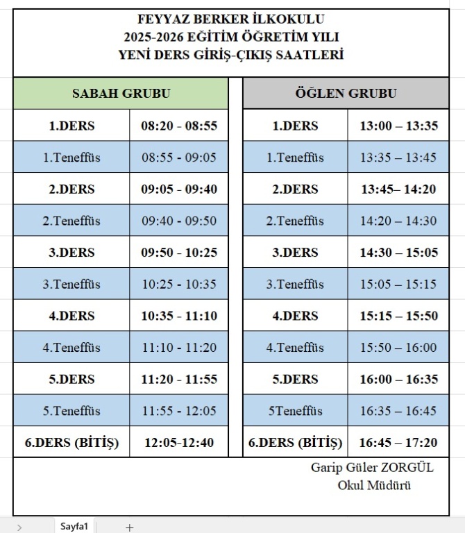 Okul Giriş Çıkış Saatleri